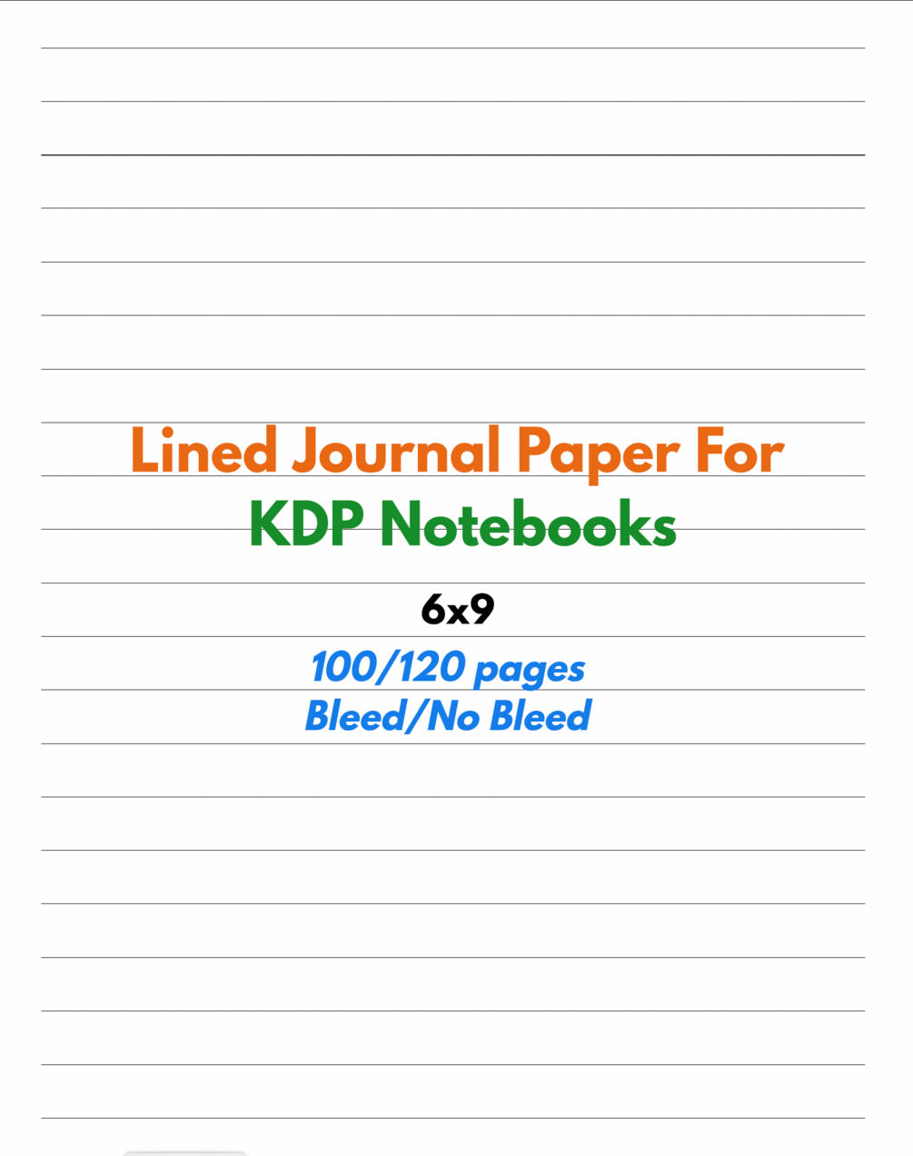 6x9 Lined Journal Paper For KDP NOTEBOOKS - 120 and 100 pages with bleed/no bleed
